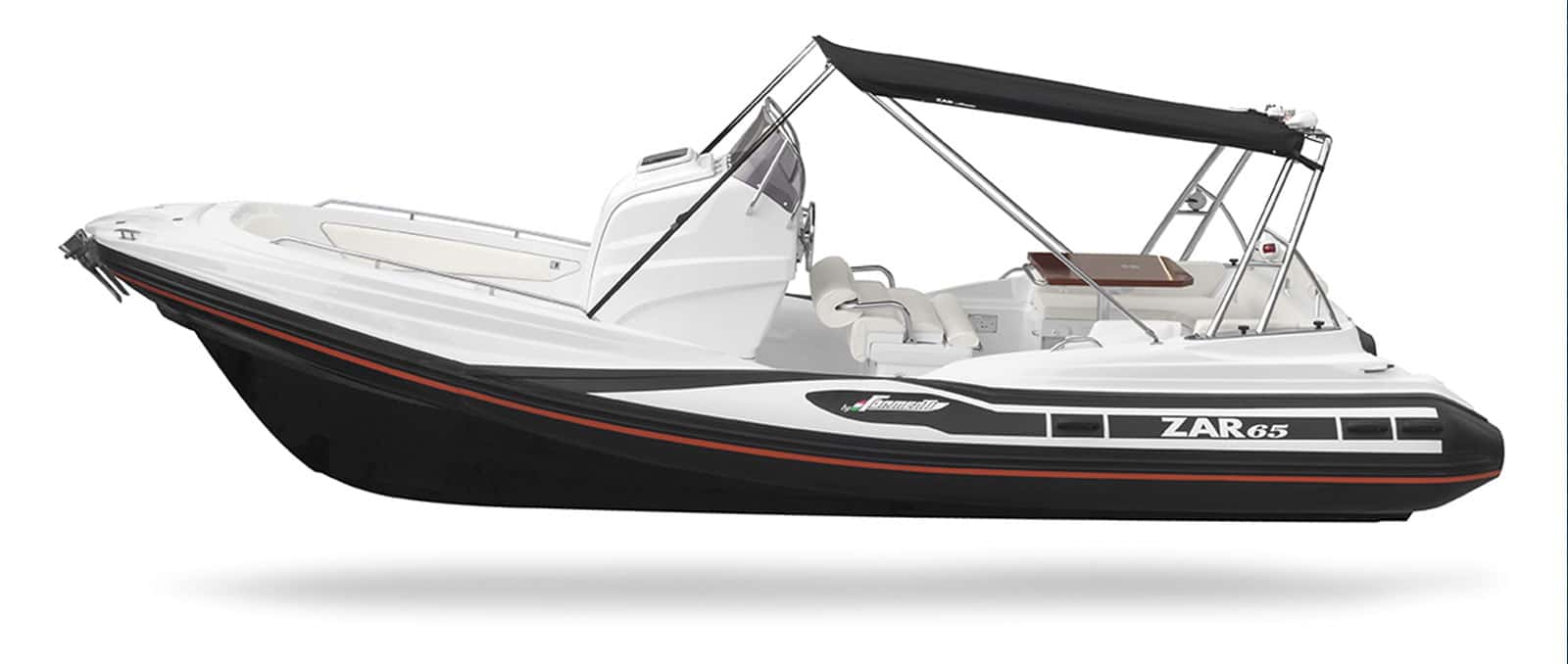 The ZAR 65 is fast and safe, soft on the waves, manageable and nimble also in the worst see conditions, because of a very deep and long hull, unthinkable in a 6,5 mt. R.I.B.