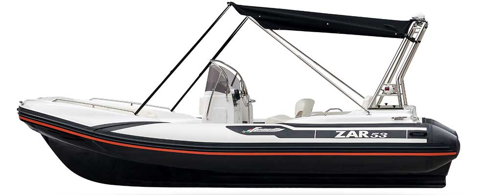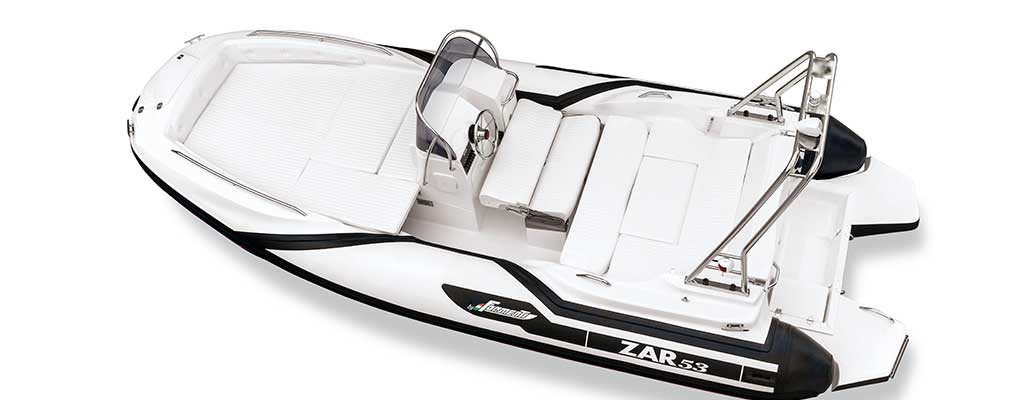 The hull is deep and long as much as the one of many bigger boats, it offers soft sailing on the waves, stable tacking and agility, all qualities that are unique in its category (and in the ones above). The line elegance and the practical design make ZAR 53 a unique rubber boat all over the world.