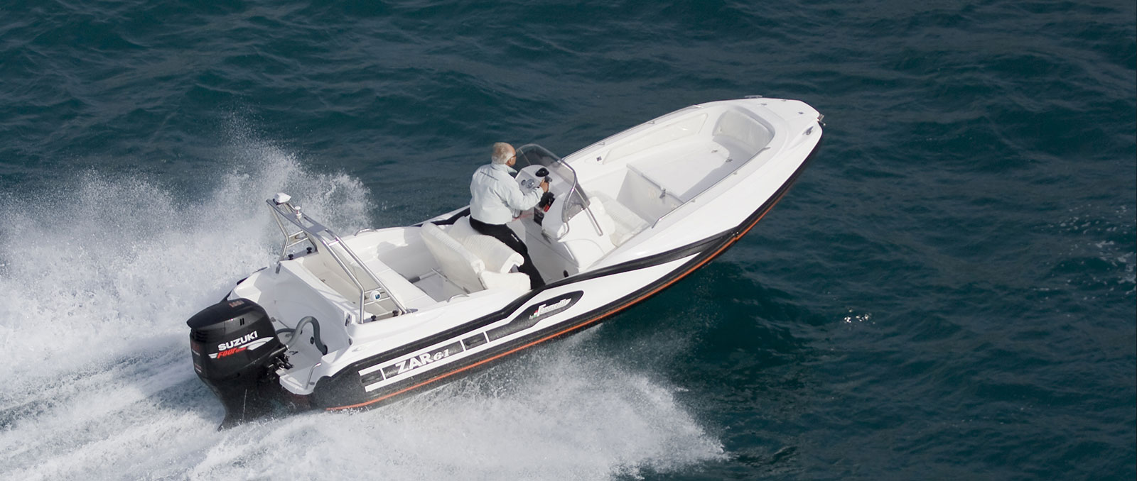 Same features of the classic ZAR 61 improved with white/grey carbon style cushions upholstery, sport driving wheel, swim platforms, switch panel.
